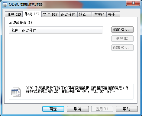 2. 选择【系统DSN】选项卡,单击【添加(D)…】按钮,系统弹出【创建新数据源】对话框。