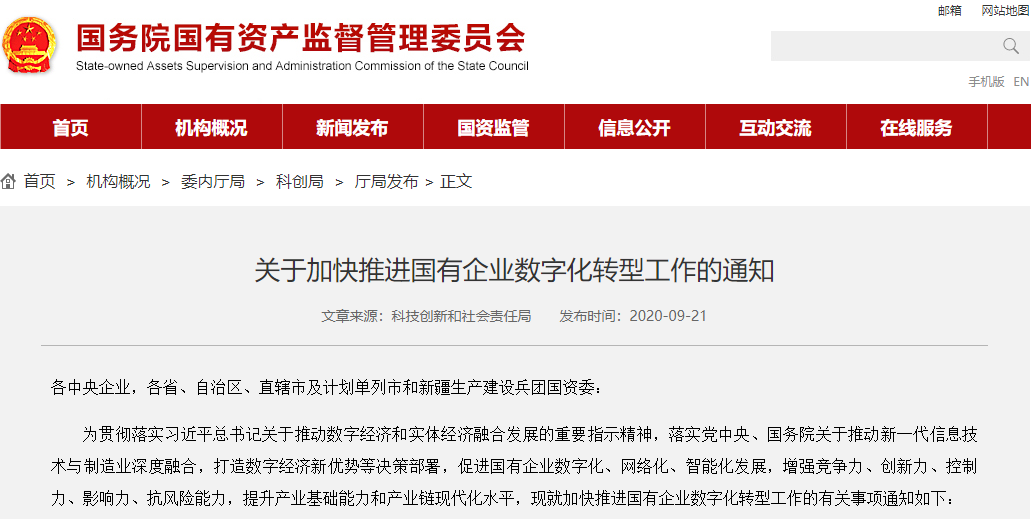 近日,国资委颁布了《关于加快推进国有企业数字化转型工作的通知》,从提高认识、夯实基础、推进创新、打造样板等多个角度,为国有企业数字化转型提供了详细的指导意见,要求加快推进国有企业数字化转型相关工作。