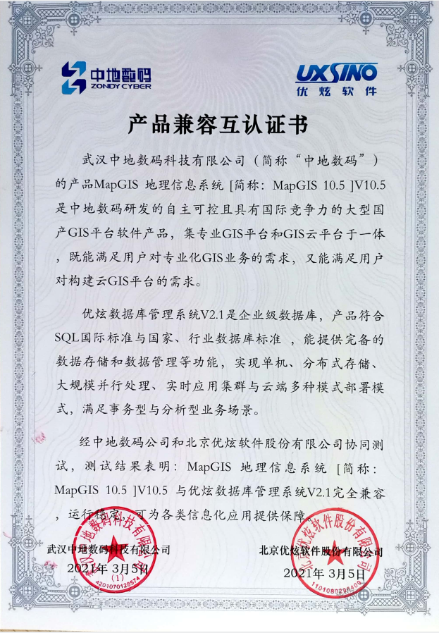 产品兼容认证是加速信创生态建设、促进关键领域国产化的重要方式。通过双方此次合作,国产数据库与国产GIS的深度结合,更好地满足用户对于安全、稳定、自主产品需求,进一步推进了我国信创产业的生态繁荣。