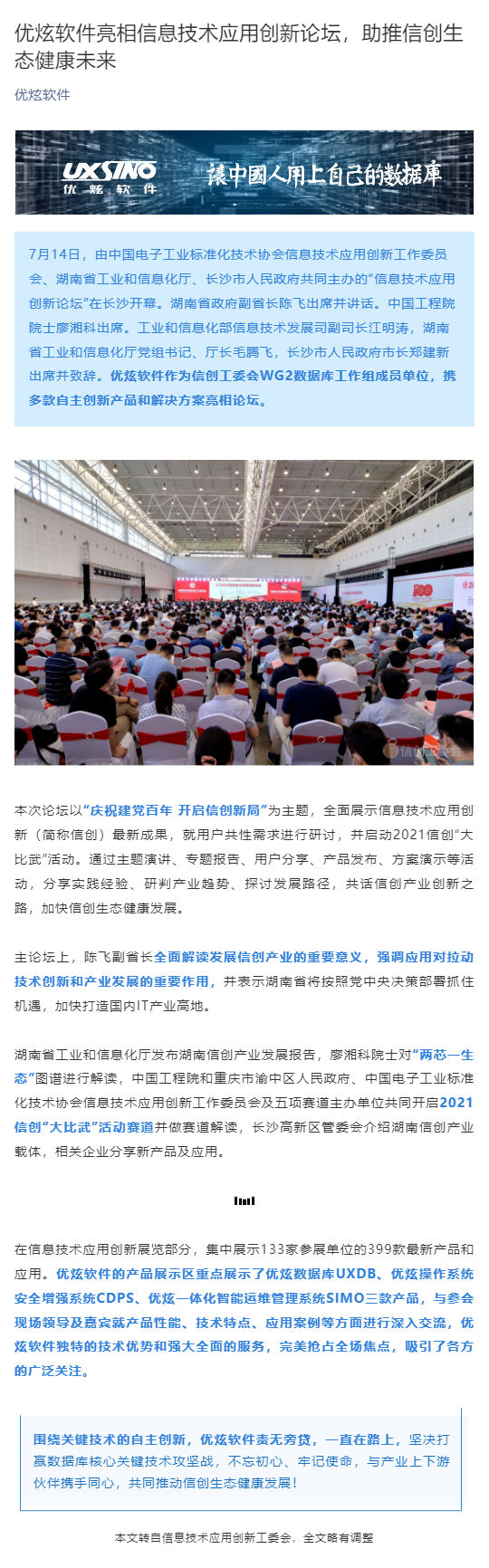 优炫软件亮相信息技术应用创新论坛,助推信创生态健康未来