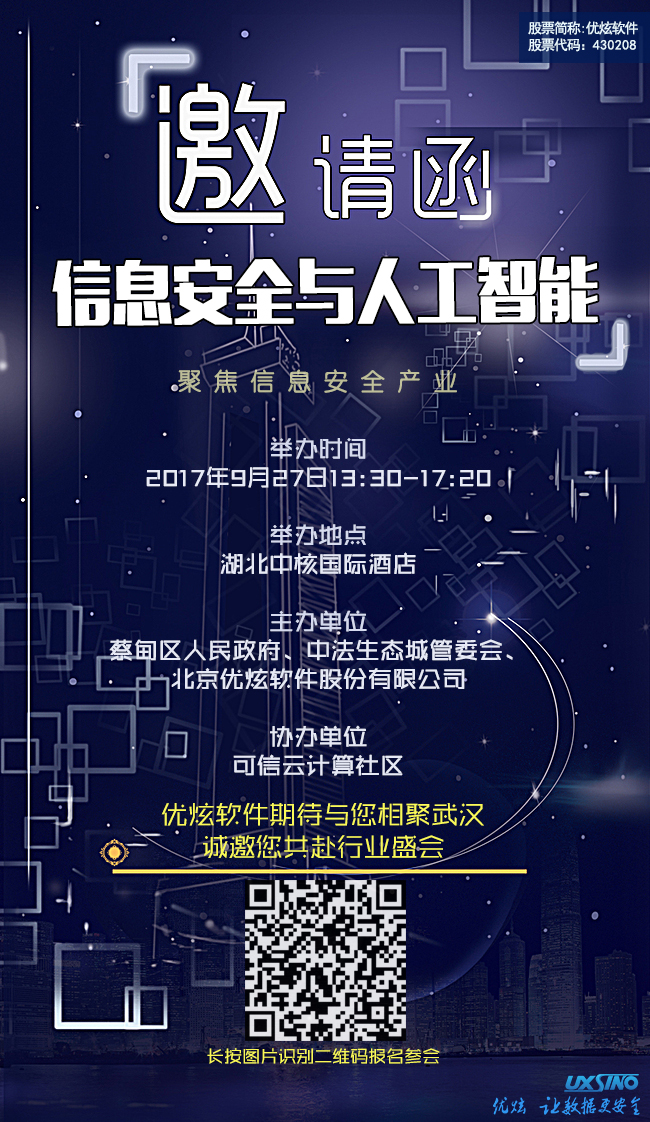 论坛主办单位优炫软件特邀您2017年9月27日共赴行业盛会,真诚期待您拨冗莅临!