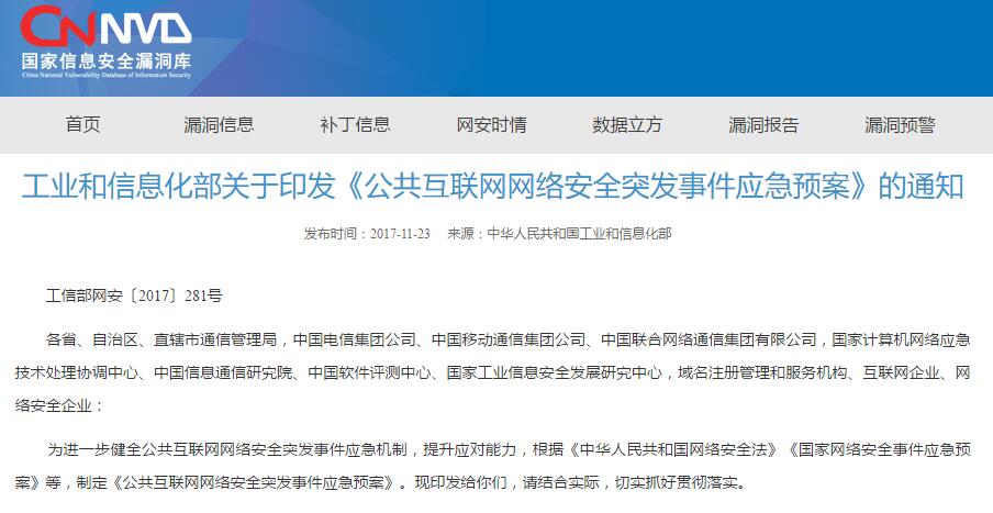 工信部关于印发《公共互联网网络安全突发事件应急预案》的通知