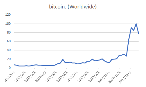 下图是Google Trends对于2017年全年Bitcoin关键字搜索量的统计,其中的这些小高峰,对应的是一场场安全事件。