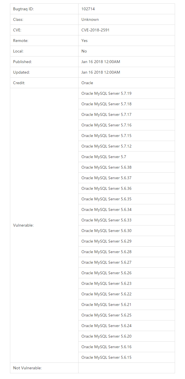 Oracle MySQL Server远程安全漏洞 CVE-2018-2591