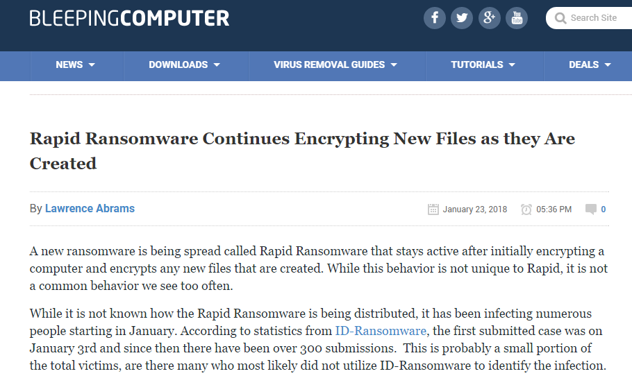 https://www.bleepingcomputer.com/news/security/rapid-ransomware-continues-encrypting-new-files-as-they-are-created/