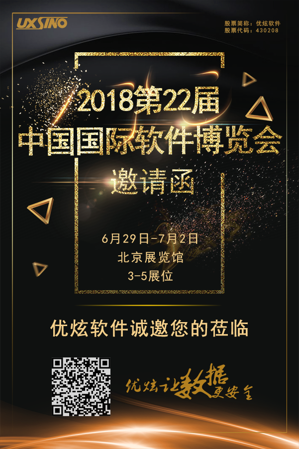 软博会一直非常关注安全领域的产品展示。2018软博会将于6月29日-7月1日在北京展览馆召开,大会邀请众多信息安全领域企业展示有关信息安全的软件企业和产品;数据安全领军企业优炫软件应邀参会,展位号为3-5,诚邀您的莅临,一同感受前沿科技,洞悉未来!