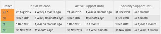 被某些人描述为PHP定时炸弹的大限中,较新的PHP 7.0更将在今年12月1日EOL(end of lifecycle),不再提供安全支持,连7.1版也将在12月1日终止主要支持,一年后结束安全支持。