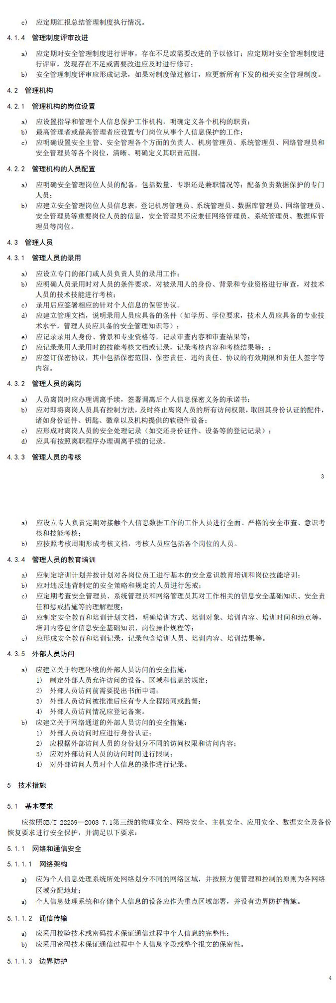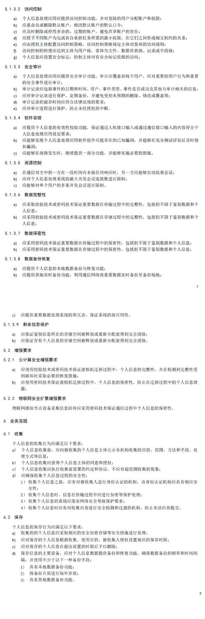 《互网个人信息安全保护指引(征求意见稿)》在第5章技术措施内分为“5.1 基本要求”和“5.2 增强要求”,其中在增强要求中强调了云计算和物联网的安全问题。基本要求提出,应按照GB/T 22239—2008 7.1第三级的物理安全、网络安全、主机安全、应用安全、数据安全及备份恢复要求进行安全保护。增强要求如下: