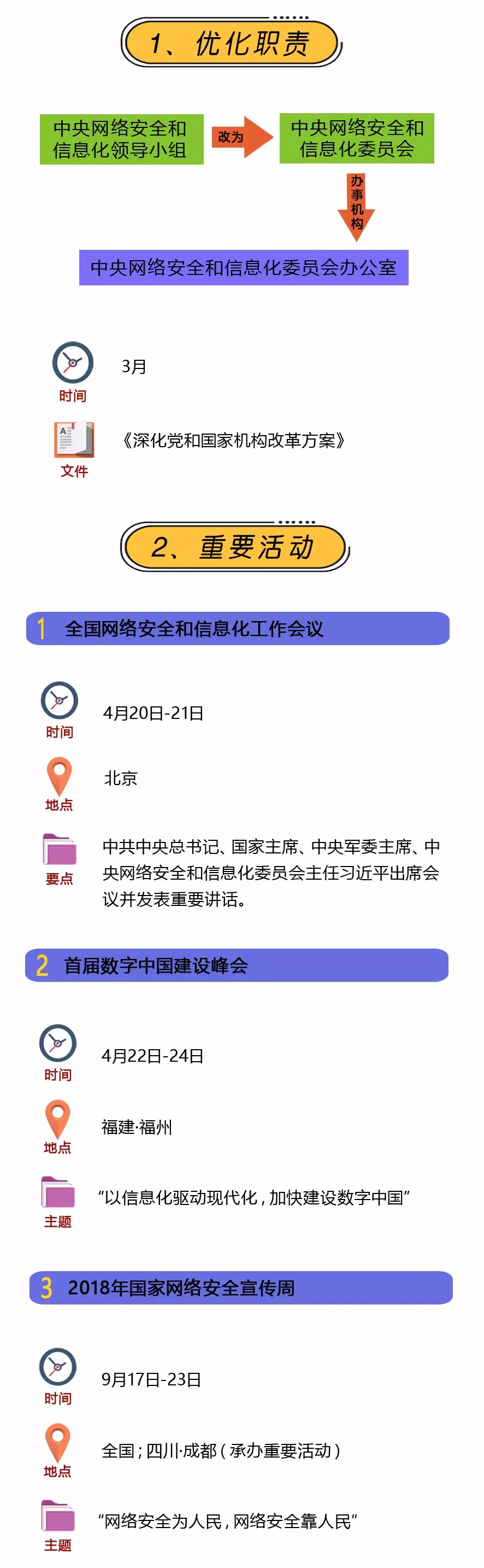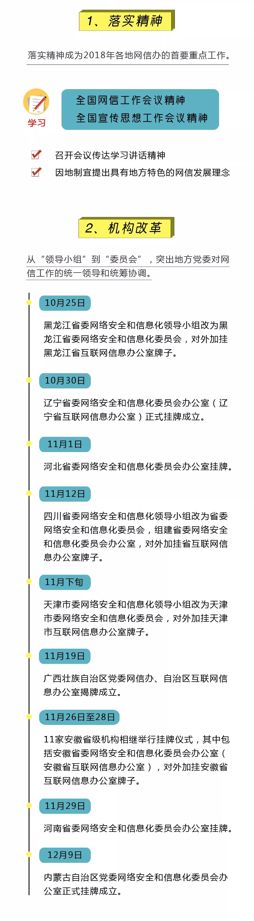2018年是各类网络安全事件陡增的一年,更是国家大力推动网信工作的一年。2018年各地网信办都做了哪些大事?我国网信领域推出过哪些重要举措?网信事业取得了哪些亮眼成绩?全年关于网信工作的报道无数,每一位网信事业从业者都在记录着网信工作发展。在我们感叹行业发展欣喜之变的同事,且随小编一起重走2018年的“网信工作大事件”之路。