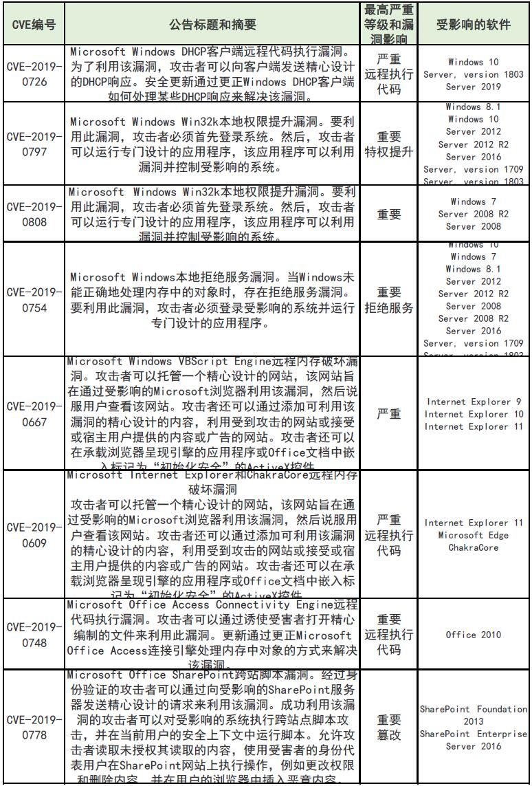 上周,微软发布了2019年3月份的月度例行安全公告,修复了其多款产品存在的224个安全漏洞。