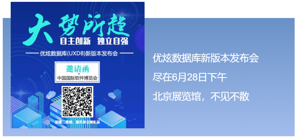 2019第二十三届中国国际软件博览会(以下简称“2019软博会”)将在北京展览馆盛大启幕,展览时间6月28日-7月1日,优炫软件受邀参会,届时,优炫软件技术专家将为您解读国产数据库的突围之路。