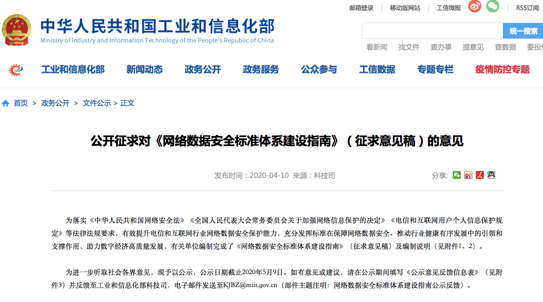 为落实《中华人民共和国网络安全法》《全国人民代表大会常务委员会关于加强网络信息保护的决定》《电信和互联网用户个人信息保护规定》等法律法规要求,有效提升电信和互联网行业网络数据安全保护能力,充分发挥标准在保障网络数据安全、推动行业健康有序发展中的引领和支撑作用,助力数字经济高质量发展,工信部于日前编制完成了《网络数据安全标准体系建设指南》(征求意见稿)(以下简称《建设指南》)。