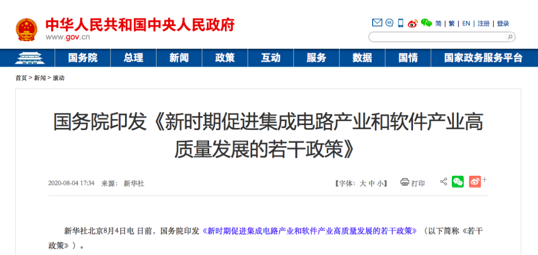 日前,国务院印发《新时期促进集成电路产业和软件产业高质量发展的若干政策》(以下简称《若干政策》)。
