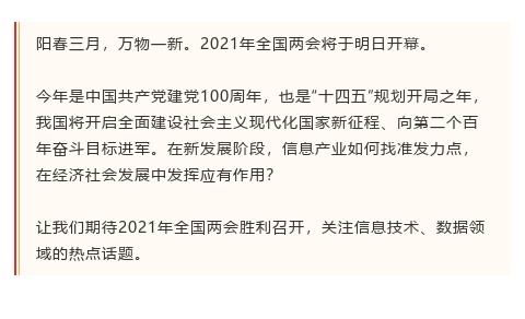 2021两会前瞻 | 关注科技自主创新、数字经济热点