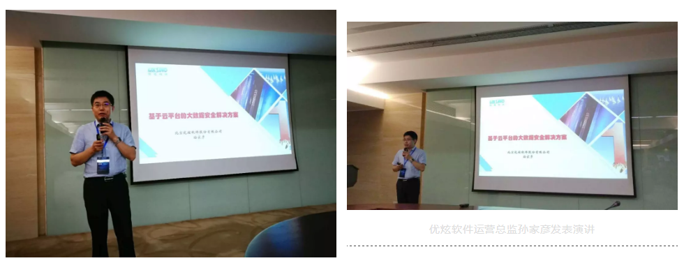 优炫软件作为数据安全领军企业应邀参会,公司运营总监孙家彦发表《基于云平台的大数据安全解决方案》主题演讲,与在场嘉宾共话云数据保护解决方案、进行技术交流。
