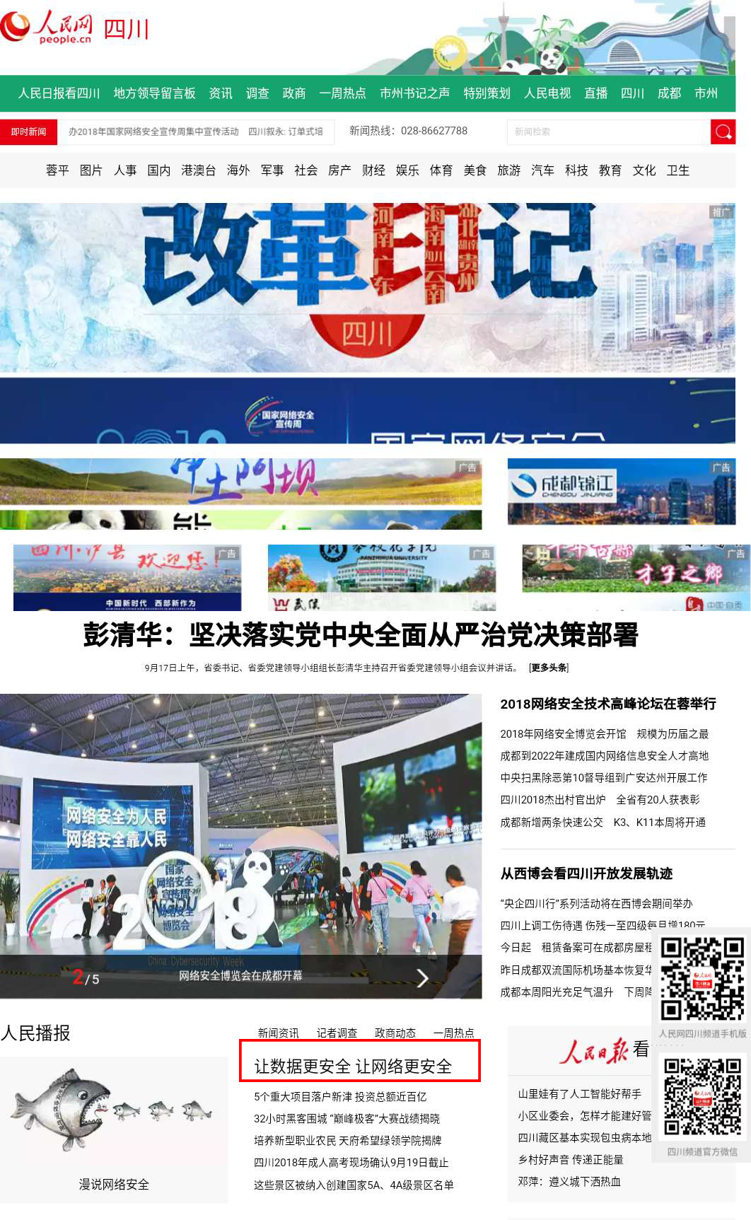 (人民网成都9月17日电)今日,以“网络安全为人民,网络安全靠人民”为主题的2018年国家网络安全宣传周在成都举行。