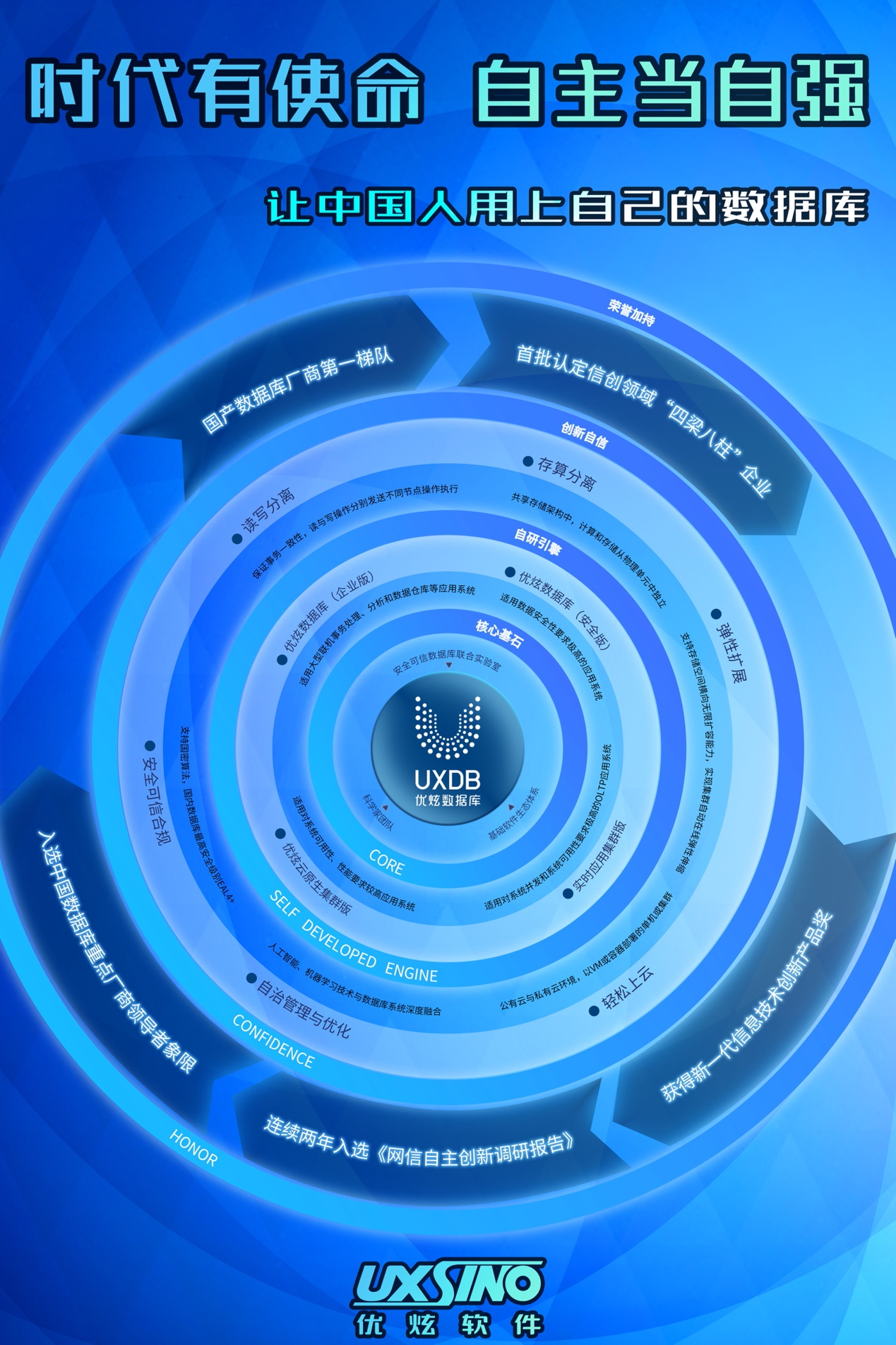 越是壮阔的征程,越需要领航的力量。优炫软件将继续坚定不移地走自主创新发展道路,把握机遇,积蓄力量,夯实成果,发展国产数据库领域新动能新优势,向中国数据库第一品牌冲击!