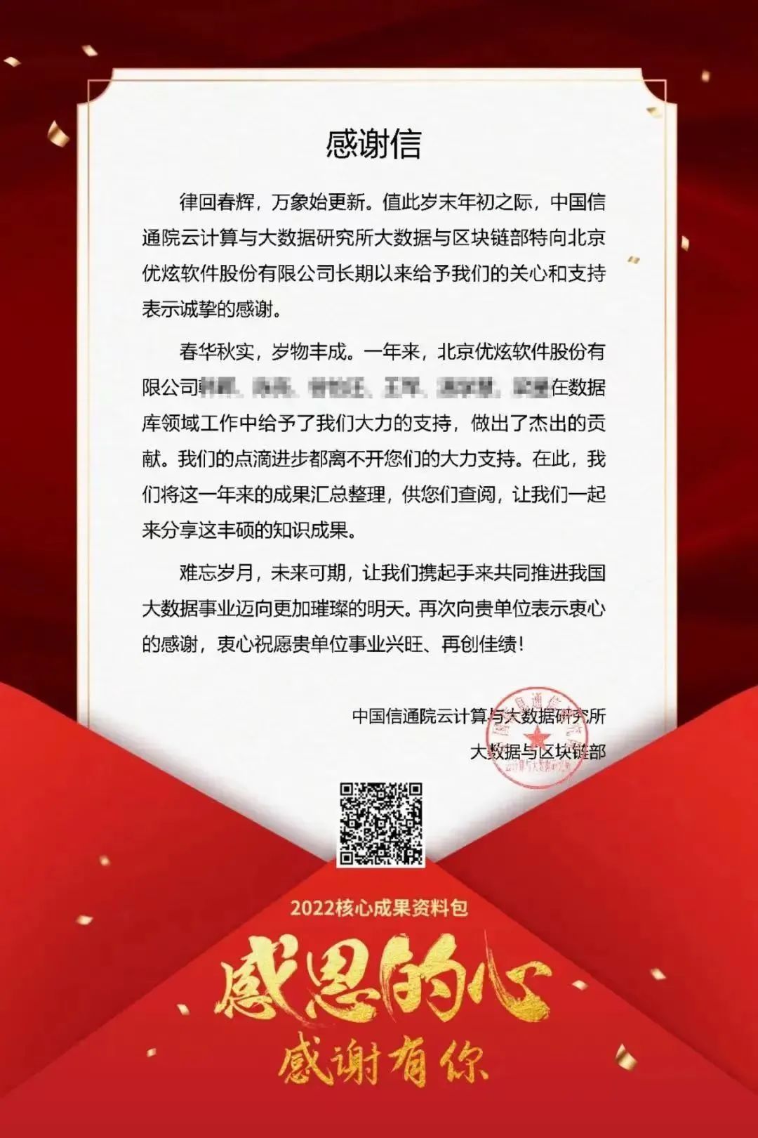 近日,中国信通院云计算与大数据研究所“简称云大所”向优炫软件发来一封感谢信,就优炫软件在数据库领域提供的支持与深入协作贡献表示感谢及高度肯定,并寄望未来继续携手共进。