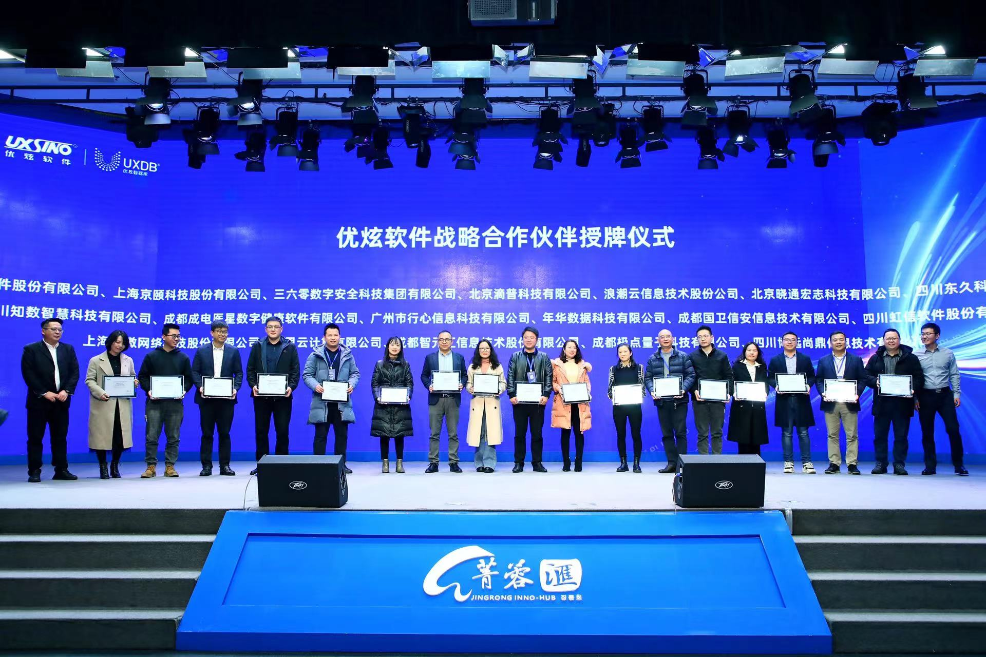 随后,优炫软件与浪潮云、360集团、泛微网络等18家厂商举行战略合作伙伴授牌仪式。优炫软件将携手合作伙伴,共探国产数据库新趋势,共话数字化转型新机遇,共赢数字时代新生态。企业代表共同表态:授牌仪式后,未来将形成更多落地合作,基于优炫数据库打造更多的解决方案和服务,帮助客户数字化转型升级,服务四川乃至全国信息产业高质量发展。