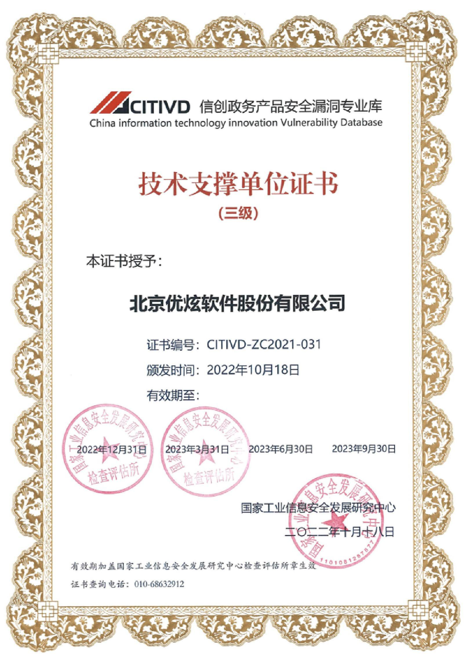 优炫软件再次入选CITIVD信创政务产品安全漏洞专业库技术支撑单位
