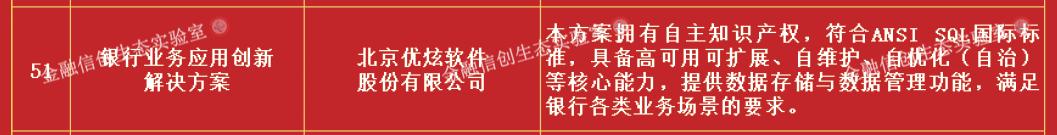 近日,中国人民银行直属机构金融信创生态实验室发布“金融信创优秀解决方案(第二期)”名单,基于优炫数据库管理系统的银行业务应用创新解决方案榜上有名。此前,基于优炫数据库管理系统的微言智能风控决策系统解决方案成功入选首批金融信创解决方案。