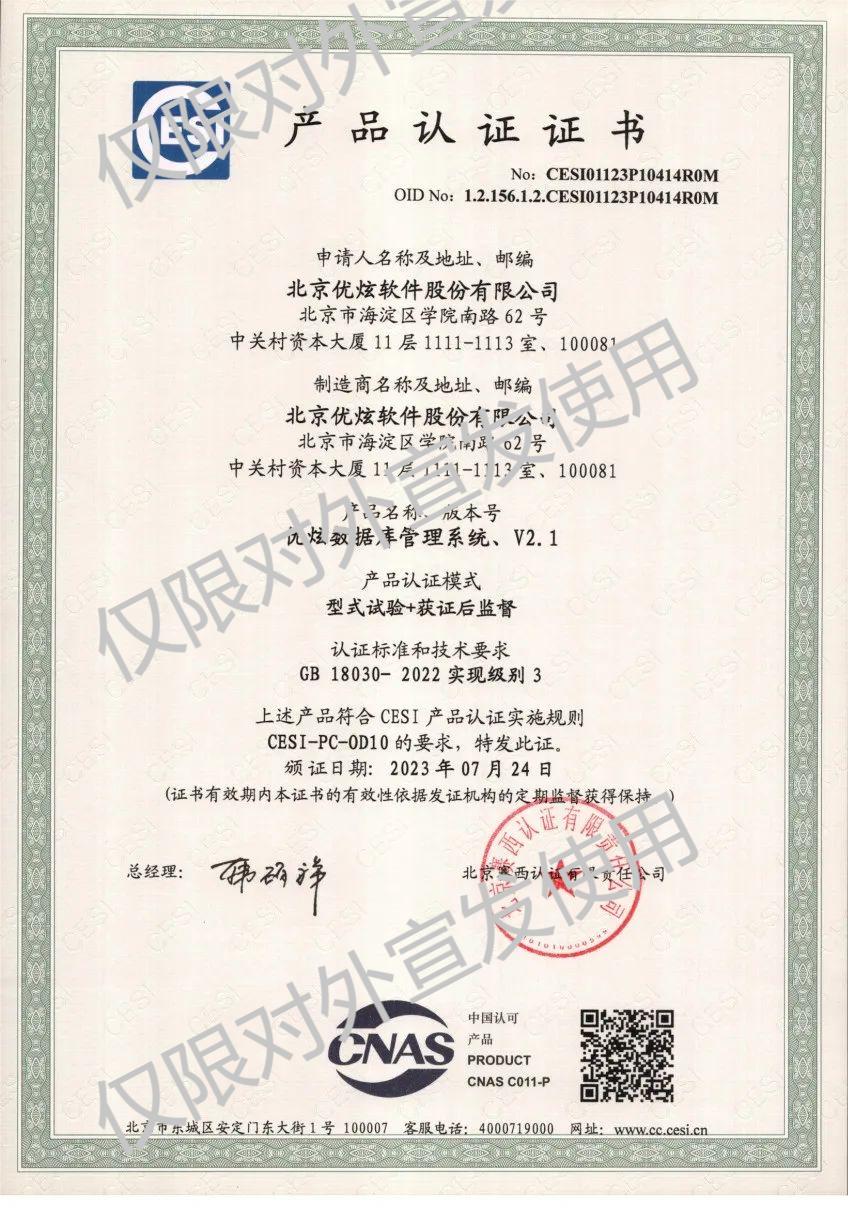 优炫数据库管理系统V2.1顺利通过最高级级别(3级)认证,是标准研究院对优炫数据库的高度认可,更好地满足政企用户多样化数据应用需求。