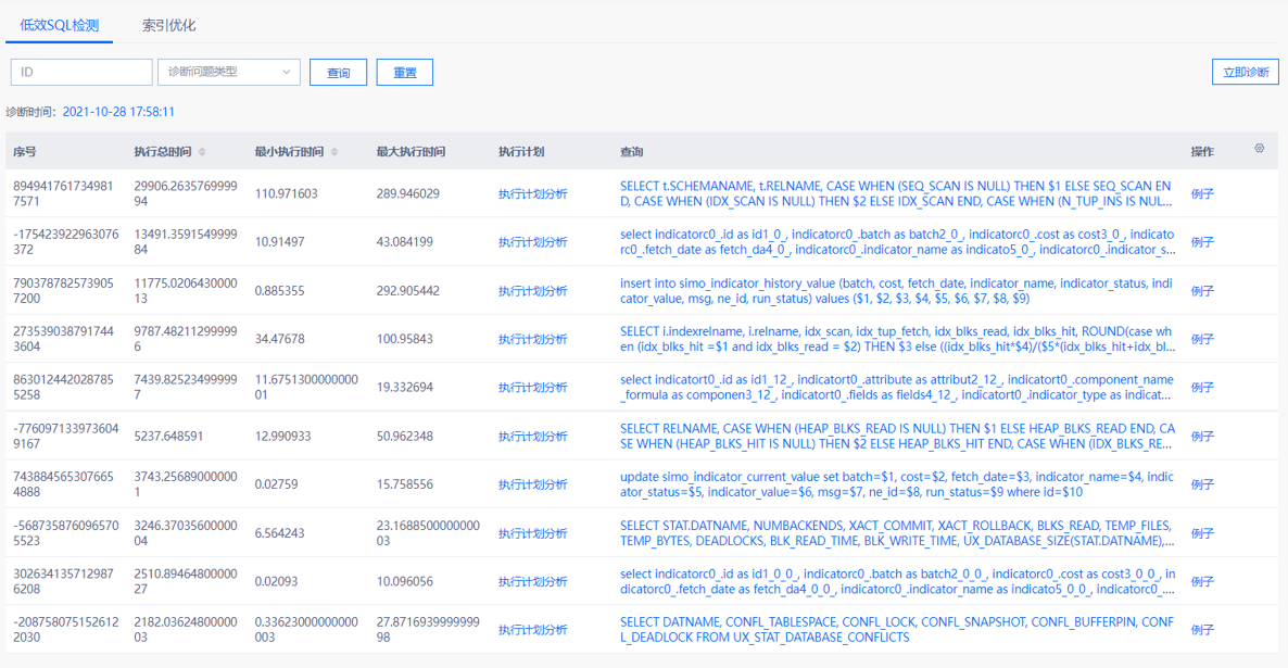 通过智能诊断,可及时发现低效SQL,并给出优化建议。