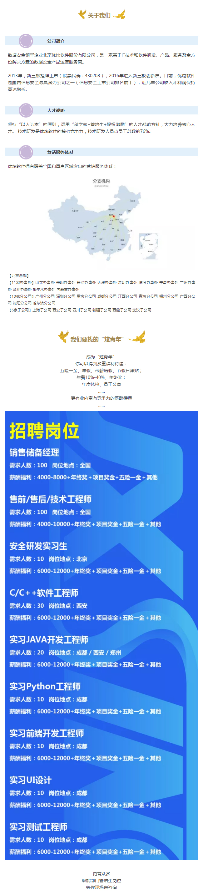 优炫软件将在全国各地展开校园招聘会