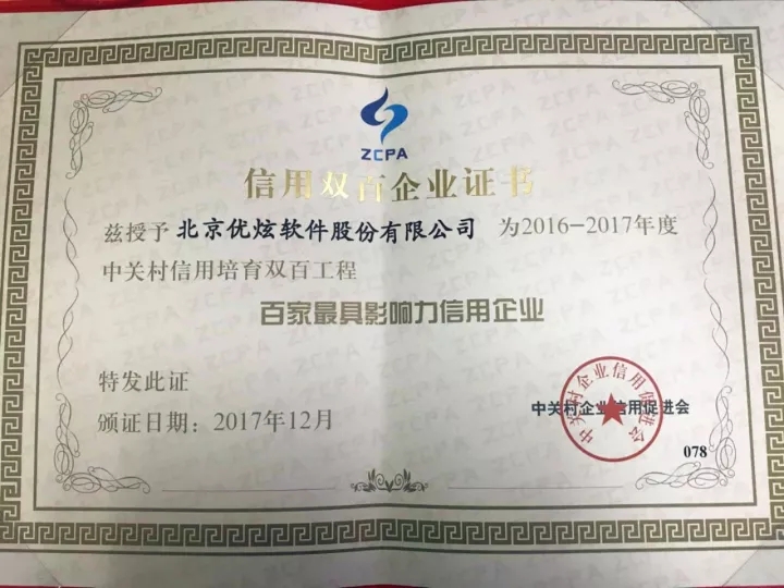 优炫软件凭借客户良好的口碑、自身优秀的信用管理、夯实的技术基础、突出的创新能力以及卓越的行业影响力和发展潜力再次成功入选“双百信用企业”,荣获信用双百企业证书。此次获奖不仅是对优炫软件多年的行业技术、品牌积累和对客户服务能力的肯定,同时也表明政府和相关机构在信用体系建设和创新方面对优炫软件诚信经营理念的高度信任和认可。