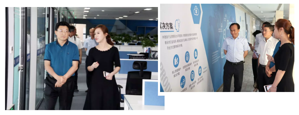 活动伊始,蒋副市长一行领导在市场总监逯瑶的带领下参观了公司文化墙,了解公司历程、资质和荣誉,人才发展和研发情况。