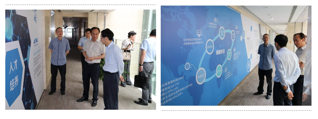 活动伊始,黄主席一行领导在梁总的带领下参观了公司文化墙,了解公司历程、资质和荣誉,人才发展和研发情况。