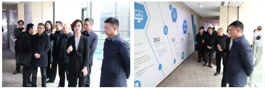 马炬县长一行先后参观了公司办公环境,了解企业文化并观看核心产品及解决方案展示。随后,双方在贵宾室进行调研座谈。