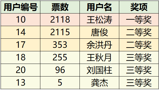 接下来将为大家公布中奖名单
