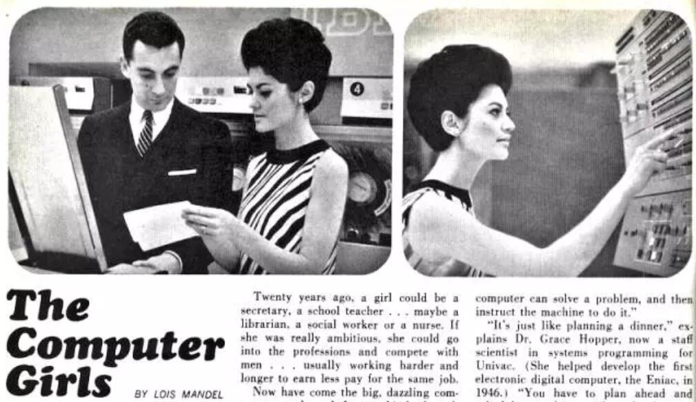 当年的《大都会》杂志,就把程序媛们称作Computer Girl,记录了她们工作的日常。《大都会》告诉全世界,这个工作是女性的抢手工作,在当年女性当中的热门程度不亚于今天的时尚编辑。