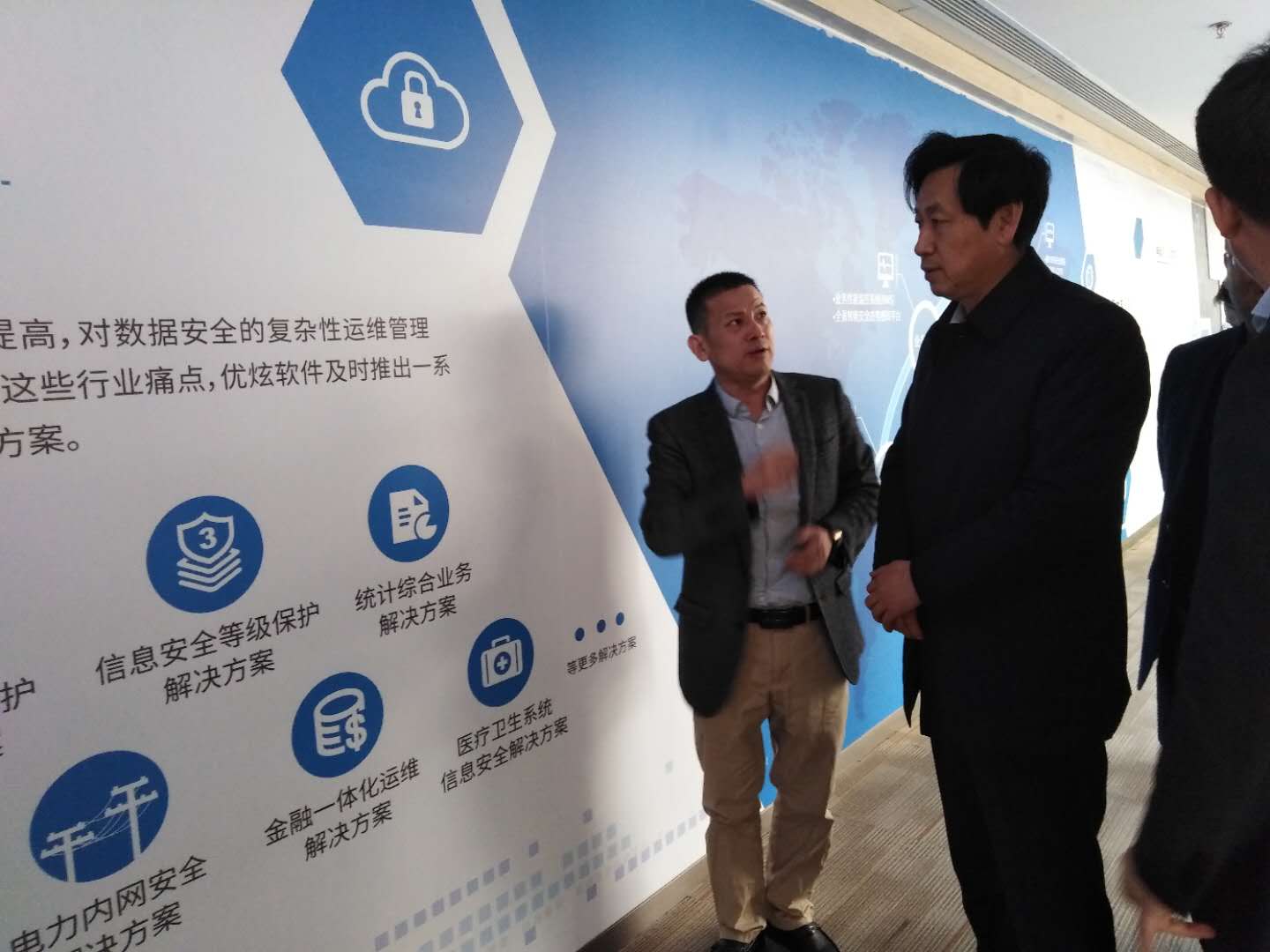 4月1日,大同市政府副市长,大同经济技术开发区党工委书记、管委会主任荆虎等领导一行临优炫软件调研指导,优炫软件副总裁李清林陪同调研。