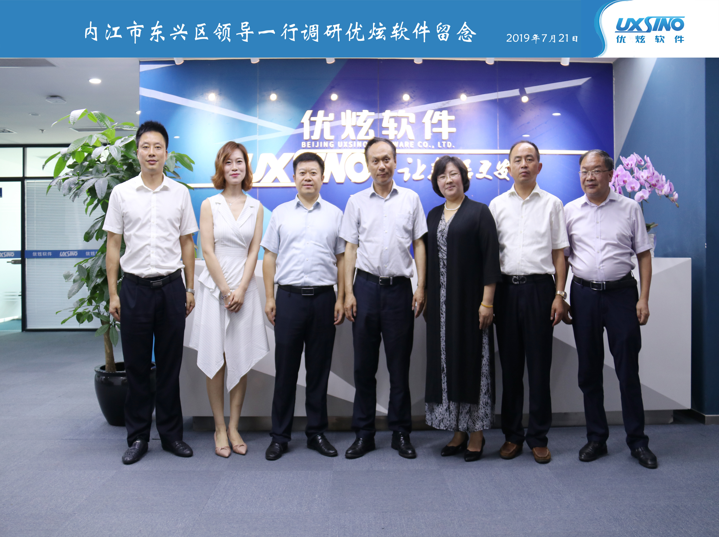 2019年7月21日,正值北京盛夏高温天气,内江市东兴区委副书记、区政府区长康厚林、东兴区农业农村局局长尤其祥、东兴区经信局机关党委书记王兴明、东兴区经合局副局长刘雄一行领导来到优炫软件北京总部调研,优炫软件董事长梁继良、市场总监逯瑶、北京内江企业商会秘书长蒋伊晋陪同调研。