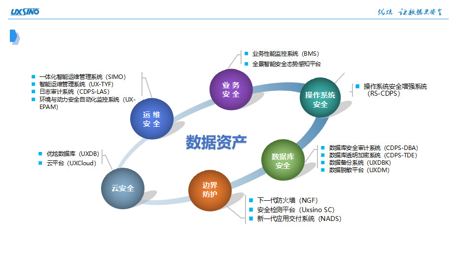 十年来,优炫软件稳步发展,产品从单一到多元,从普通到领先,不断进化的优炫软件目前已经形成了操作系统安全、数据库安全、云安全、运维安全、业务安全、边界防护六大核心数据保护产品体系。几十种数据安全产品,从边界防护到内网安全,从被动防御到主动保护,优炫软件打造的是全方位的数据安全保护矩阵。