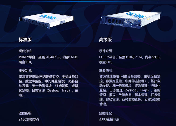 优炫智能运维一体机是软、硬一体的标准化运维产品,分有标准版和高级版。智能运维一体机精选成熟稳定的功能,并通过严格的测试及产品适配,实现了产品标准化,大大降低了部署周期、产品价格、优化操作界面、提升兼容性等。换句话说,有了智能运维一体机,能让企业轻松实现简易化智能管理,在数据容量不断提升的现状下,减轻运维成本,提升工作效率,减轻企业IT运维管理的人工日程巡检压力,实现最大化资源利用率。