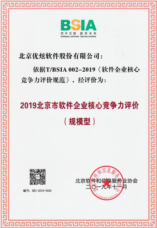 本次软件企业核心竞争力的评选是以“软件企业核心竞争力评价规范”为主要评选依据, 对软件企业的企业规模、经营业绩、研发能力、创新成果等方面提出要求,对竞争力评价过程提出规范性要求,从五个维度体现软件企业竞争力水平。优炫软件经评审组层层审核,最终成功入选北京市软件企业核心竞争力评价(规模型)企业。