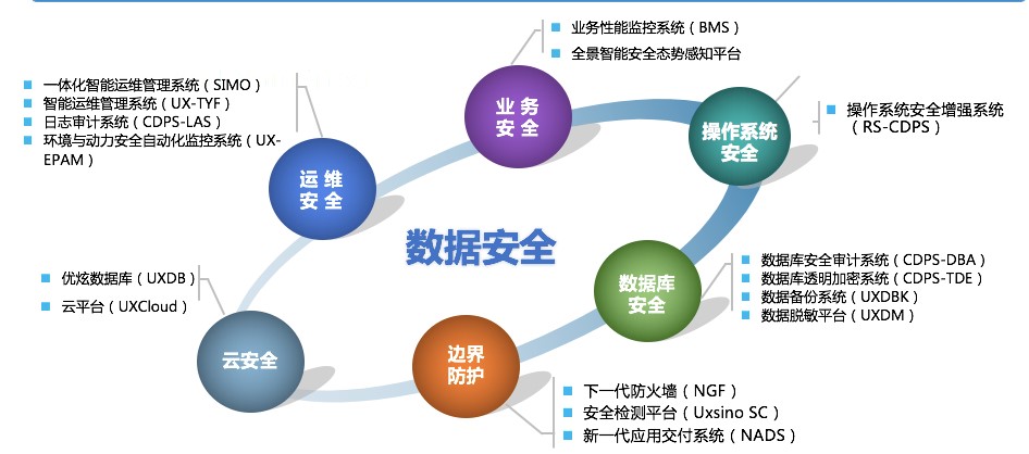 优炫围绕核心数据资产形成了操作系统安全、数据库安全、边界防护、云安全、运维安全、业务安全六大方向的产品系列,从边界防护到内网安全,从被动防御到主动保护,实现用户的全方位安全保护,并依据行业属性为用户提供全方位整体解决方案,客户遍及政府、金融、教育、军工、医疗、能源、电力等领域。