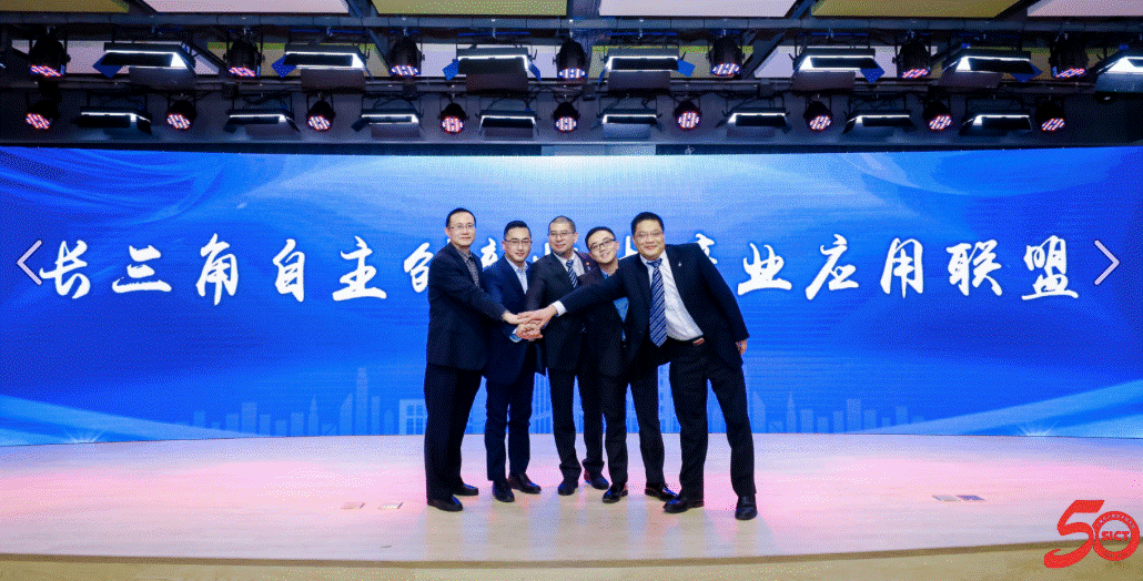 报告会“压轴”环节是长三角自主创新技术产业应用联盟启动仪式。北京优炫软件股份有限公司、上海申腾信息科技有限公司、上海浪潮云计算科技有限公司、永中软件股份有限公司、上海市数字证书认证中心有限公司代表共同开启了这一历史时刻。