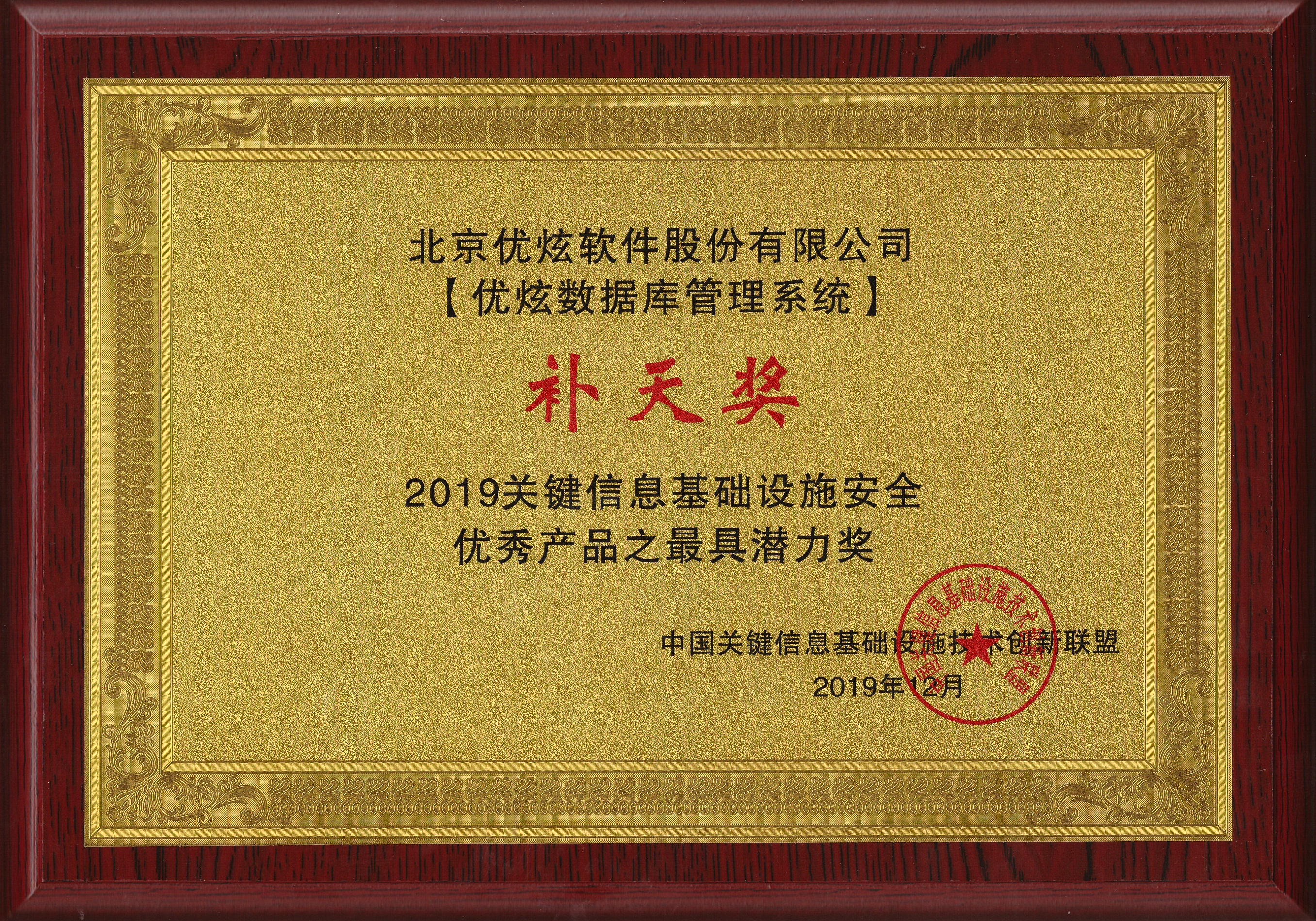 12月26日,“第二届金融关键信息基础设施保护论坛暨2019关键信息基础设施安全优秀产品、解决方案评选活动颁奖仪式”在京举办。优炫软件旗下产品优炫数据库从众多参评项目中脱颖而出,荣获“补天奖”优秀产品之最具潜力奖。