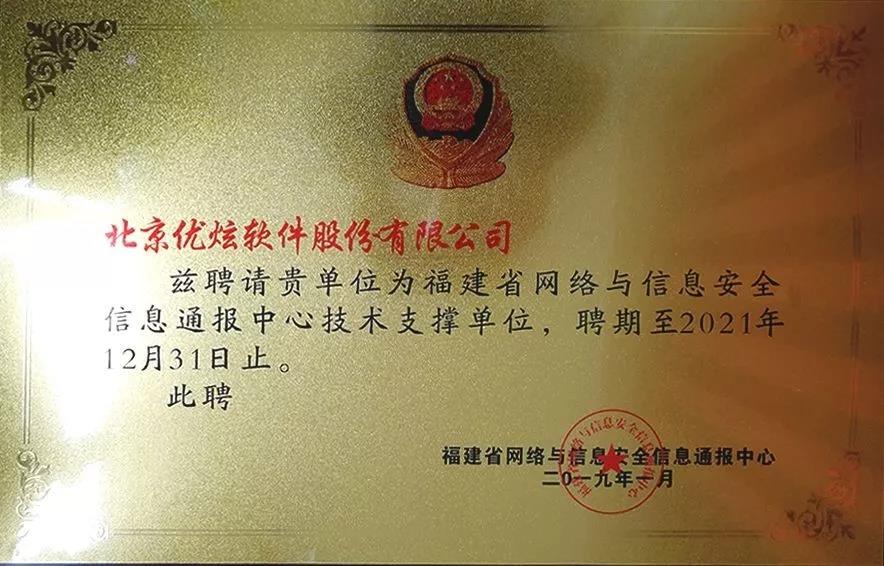 2019年1月,福建省网络与信息安全信息通报中心聘请北京优炫软件股份有限公司为技术支撑单位。优炫软件发挥自身的技术优势,与通报中心加强沟通紧密合作,共享网络技术资源,为福建省内各大企业机构提供安全技术保障,维护信息安全。