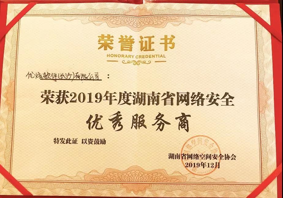 湖南省网络空间安全协会表彰先进,激励和动员全社会进一步重视、关心、支持湖南网络安全等级保护管理工作的单位,授予优炫软件“2019湖南省网络安全优秀服务商”称号。
