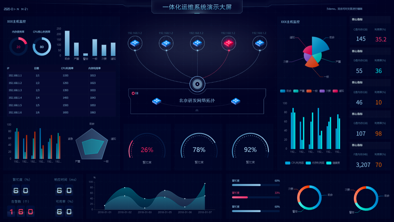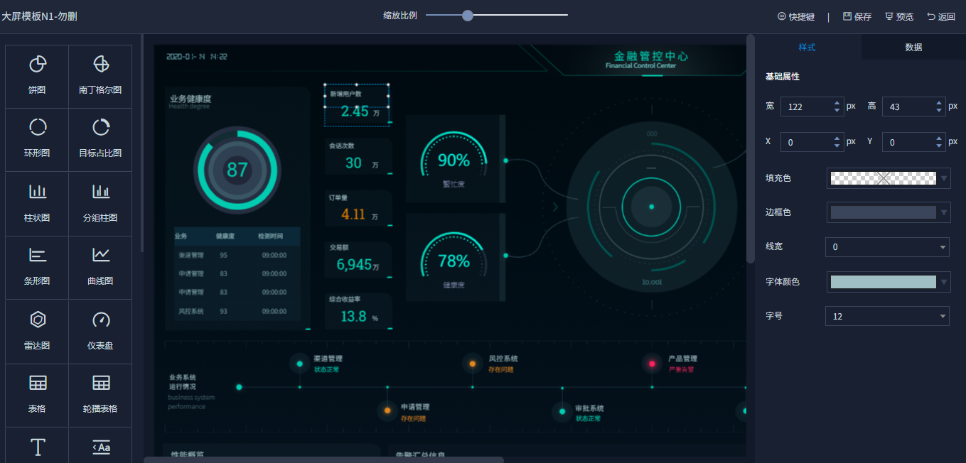 ●支持多维度数据、组合各种细颗粒度指标来生成主题大屏。