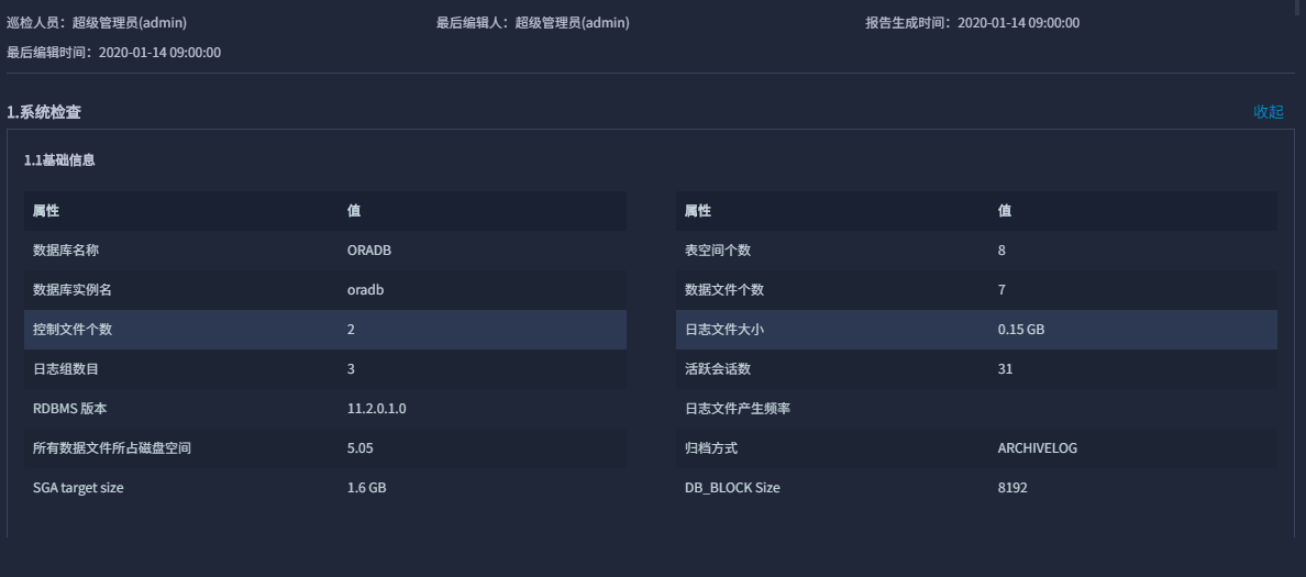 ●专家级的Oracle巡检、报表:可从参数设置、对象、用户权限、SQL、软件版本、数据备份、操作系统、集群八大维度进行各项数据库指标的巡检,生成专业数据库巡检报表。