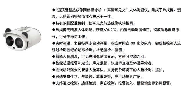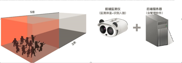 效率高:可实现快速多人同时体温检测筛查、实现自动预警机制,可以在较远距离、大面积进行多人检测。