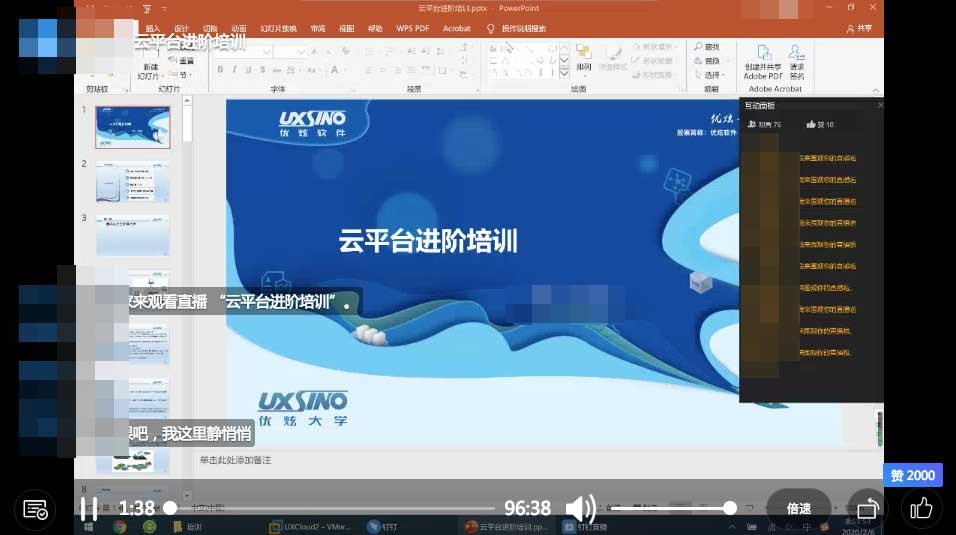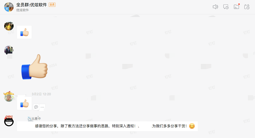 疫情期间,优炫大学的主讲老师也一直保持着自信昂扬、积极乐观的学习精神和工作状态参与到在线培训中。主讲老师授课精彩、生动有趣、干货满满;大家踊跃参与、互动高涨、好评如潮。为优炫大学的讲师点赞!
