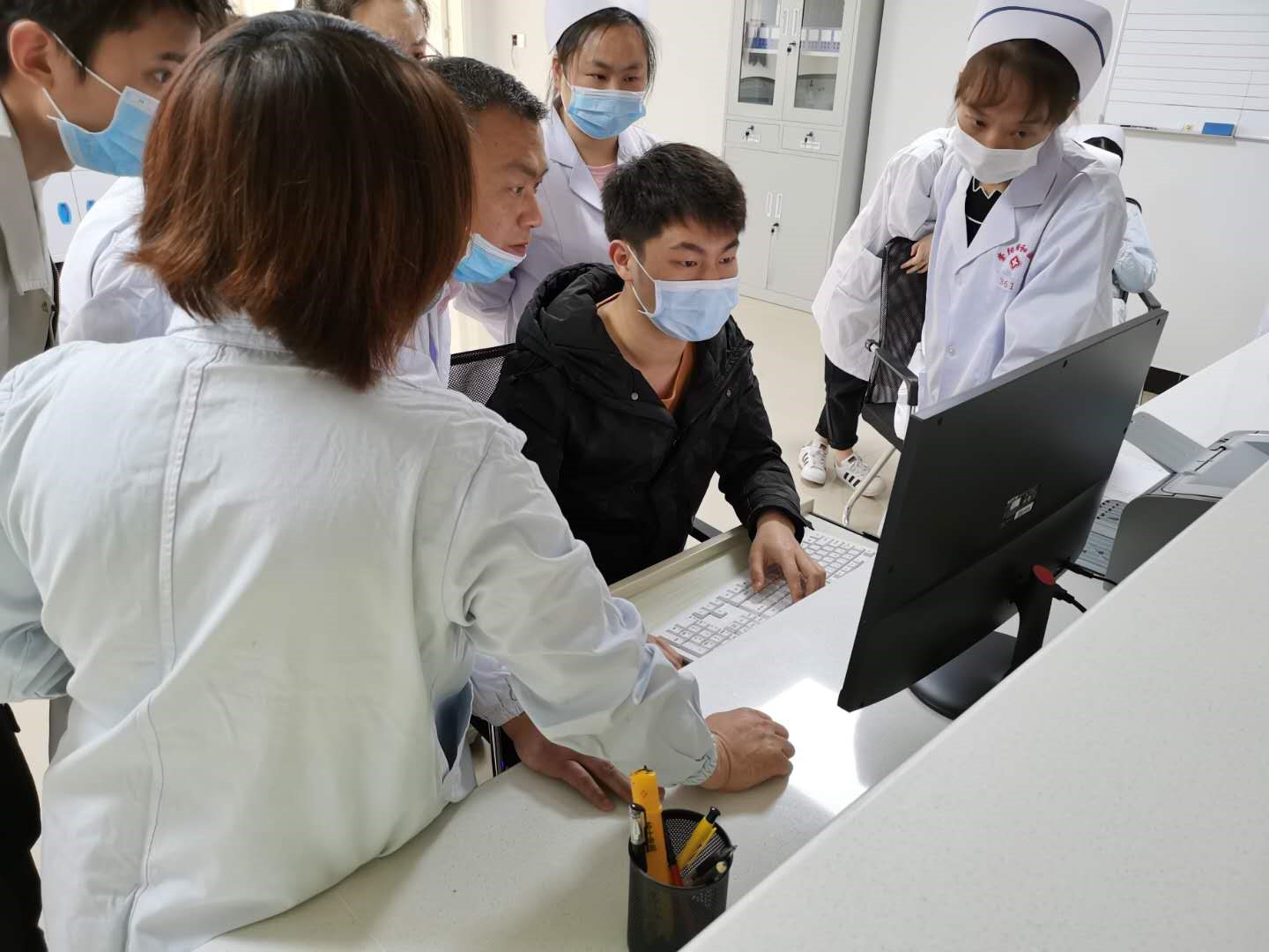 (图为信息网络工程师为医护人员进行业务系统软件使用培训)