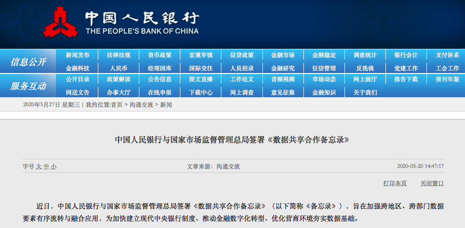 近期中国人民银行也与国家市场监督管理总局签署《数据共享合作备忘录》,旨在加强跨地区、跨部门数据要素有序流转与融合应用,为加快建立现代中央银行制度、推动金融数字化转型、优化营商环境夯实数据基础。